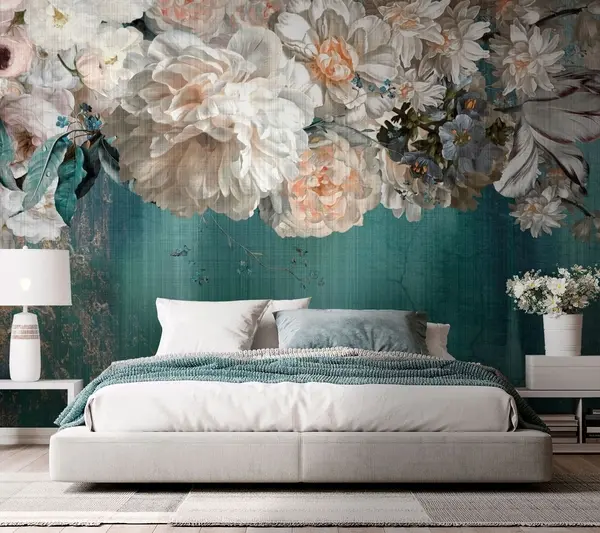 Valokuvatapetti Suuri rehevä kukkakimppu grunge-kuvioidulla Nr u95430
