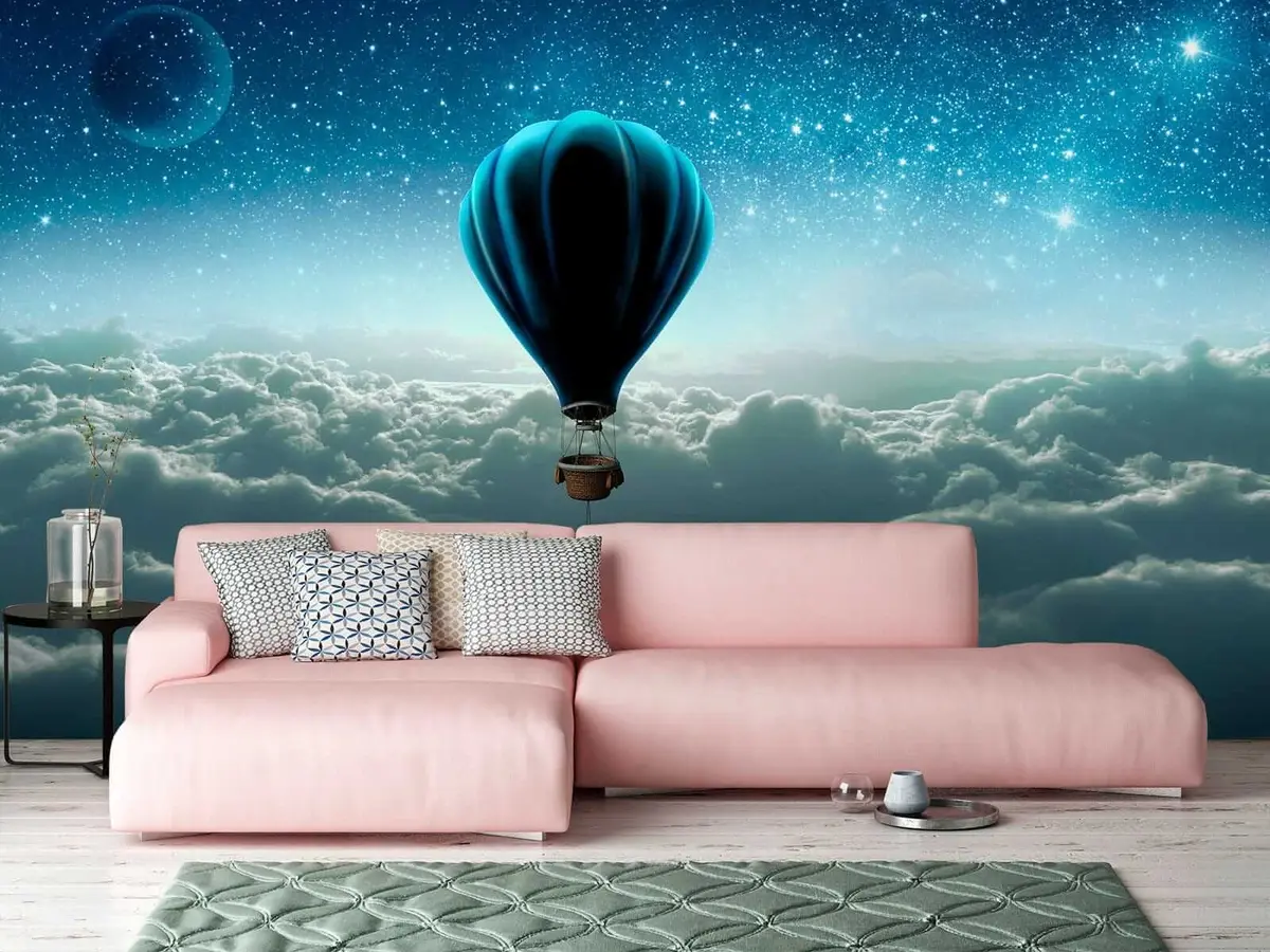 Valokuvatapetti Kuumailmapallo yötaivaan taustalla Nr u70538