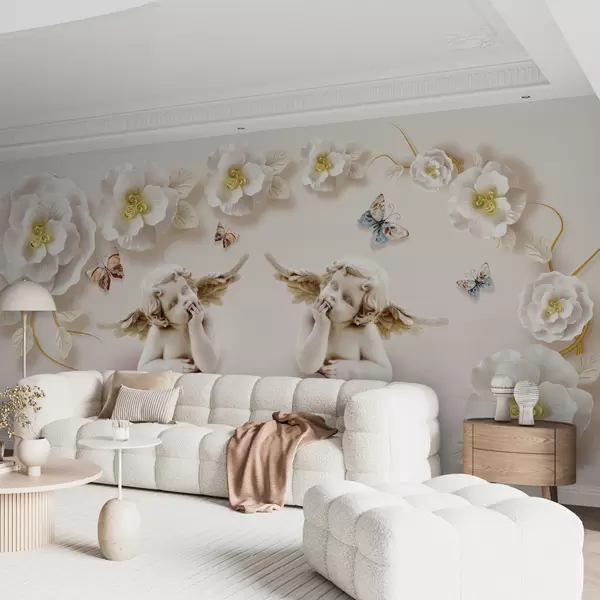 Valokuvatapetti Kerubit ja kukat Nr u60747