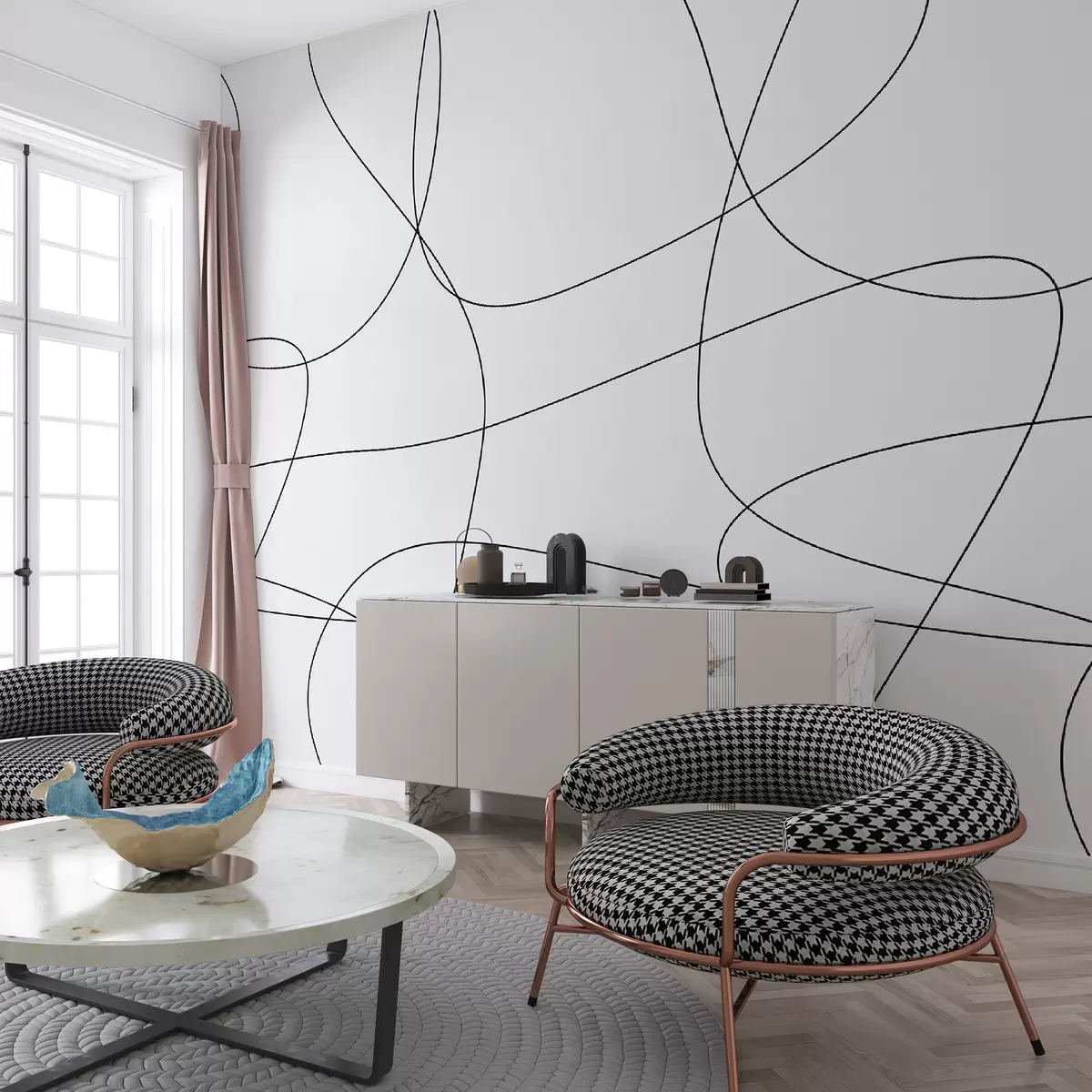 Valokuvatapetti Tyylikäs tapetti, jossa on boho-tyylisiä linjoja Nr u98563