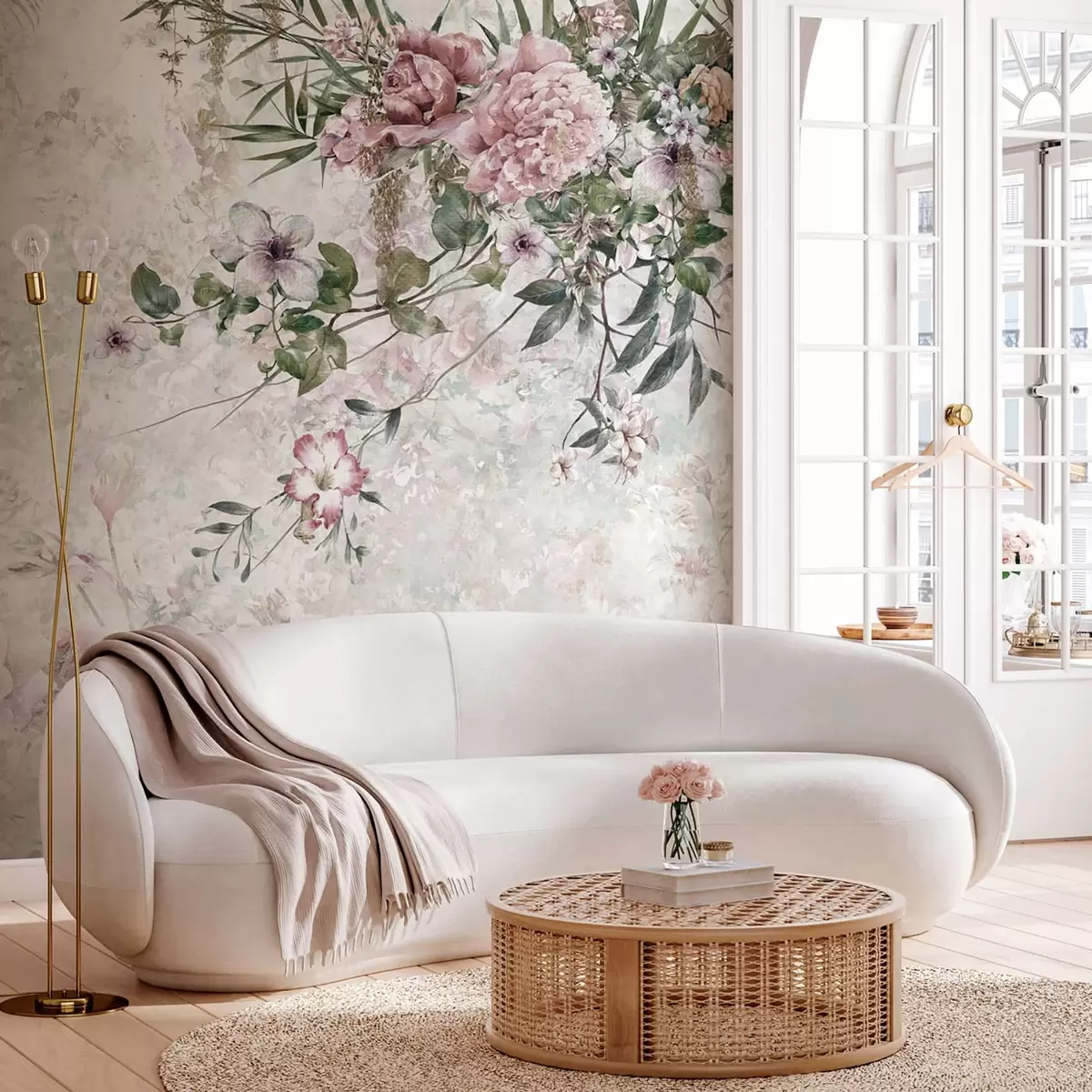 Valokuvatapetti Vintage-kukkia marmoriseinällä Nr u97046
