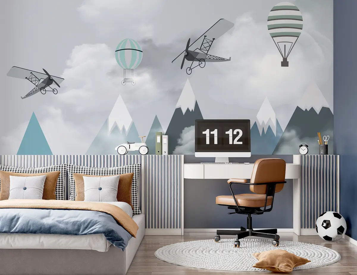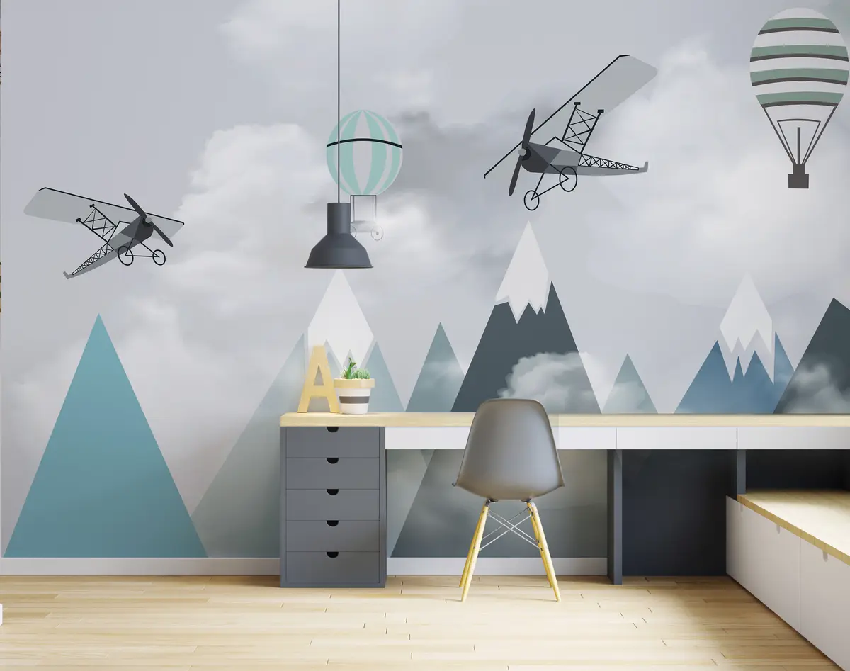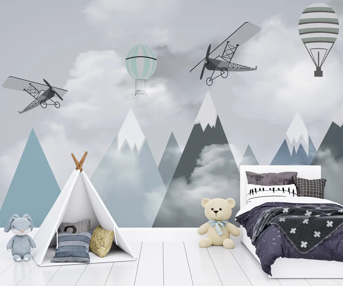 Valokuvatapetti Vuoria, lentokoneita, ilmapalloja Nr u95370