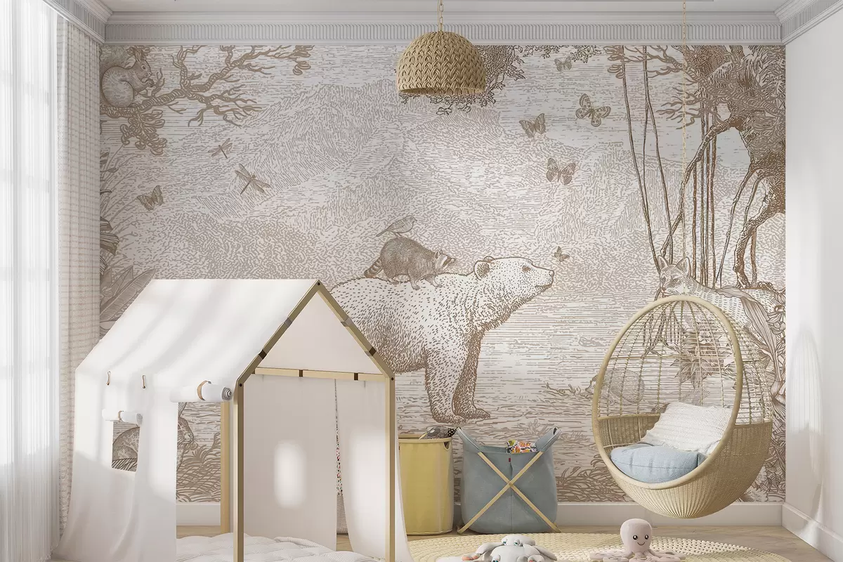 Valokuvatapetti Keijumetsä, jossa on ihania eläimiä Nr u95425