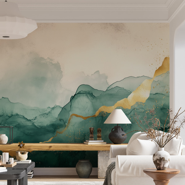 Sileät abstraktit muodot vaaleanbeigen ja vihreän sävyissä