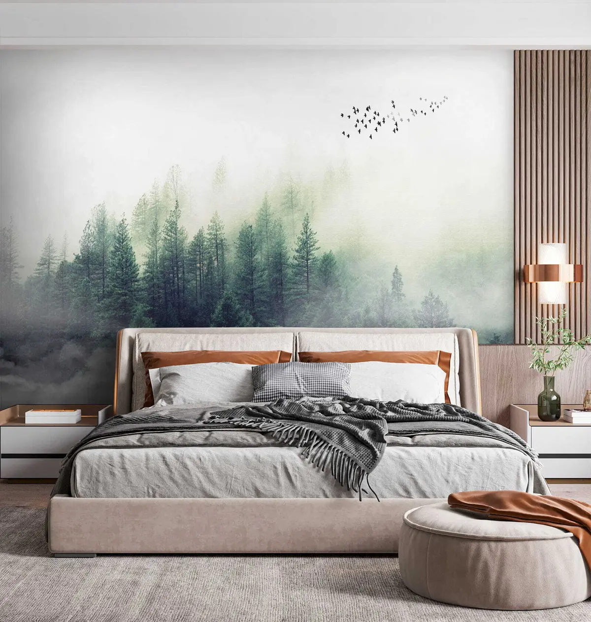 Valokuvatapetti Metsä ja linnut sumussa Nr u10882