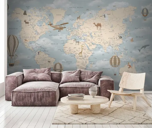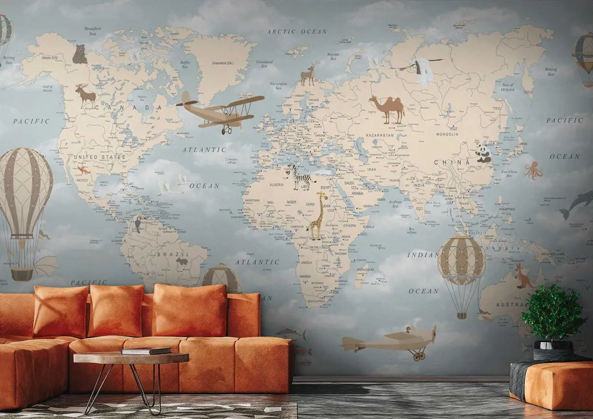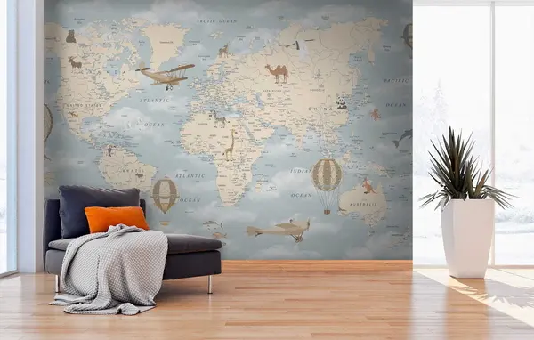 Valokuvatapetti Lasten maailmankartta lentokoneilla Nr u60135