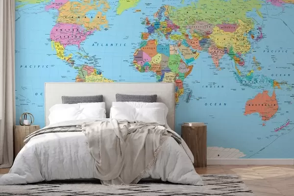 Valokuvatapetti Maailmankartta maiden lipuilla u60137