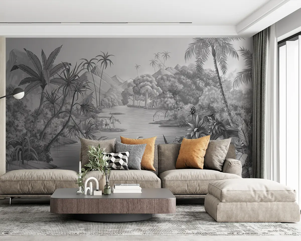 Valokuvatapetti Mustavalkoinen tropiikki Nr u59040