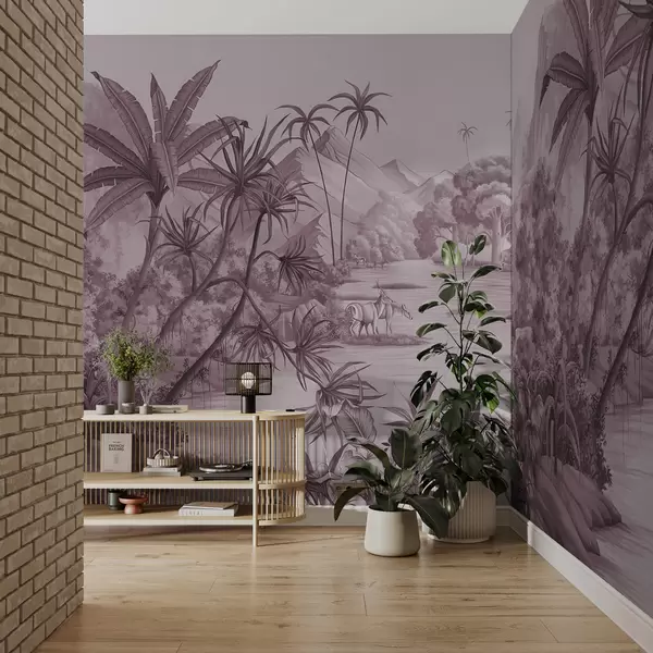 Valokuvatapetti Musta ja valkoinen tropiikissa violetti värit Nr u59040v3