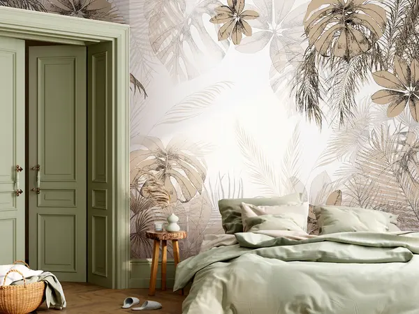 Valokuvatapetti Trooppisia puita ja lehtiä metsässä valkoisella pohjalla Nr u96472
