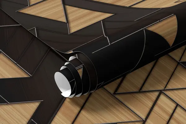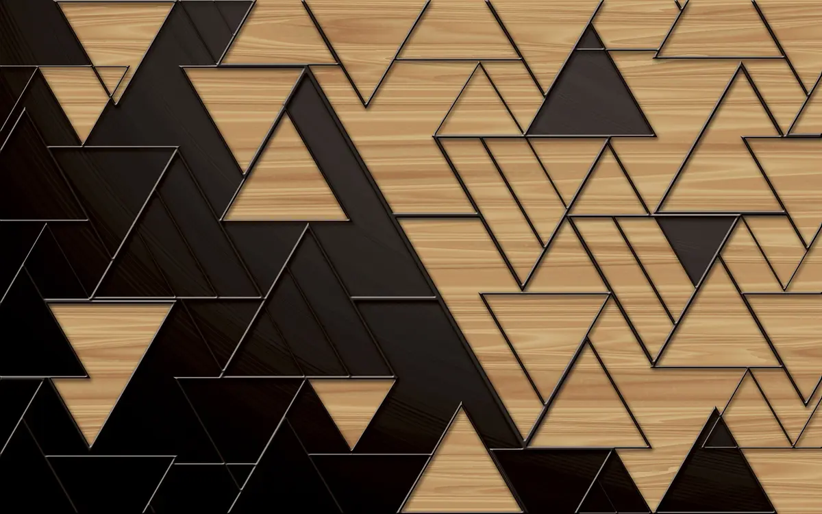 Valokuvatapetti 3D tummanharmaa ja puunjyvä kolmioita kohokuvioitu linjat Nr u75167