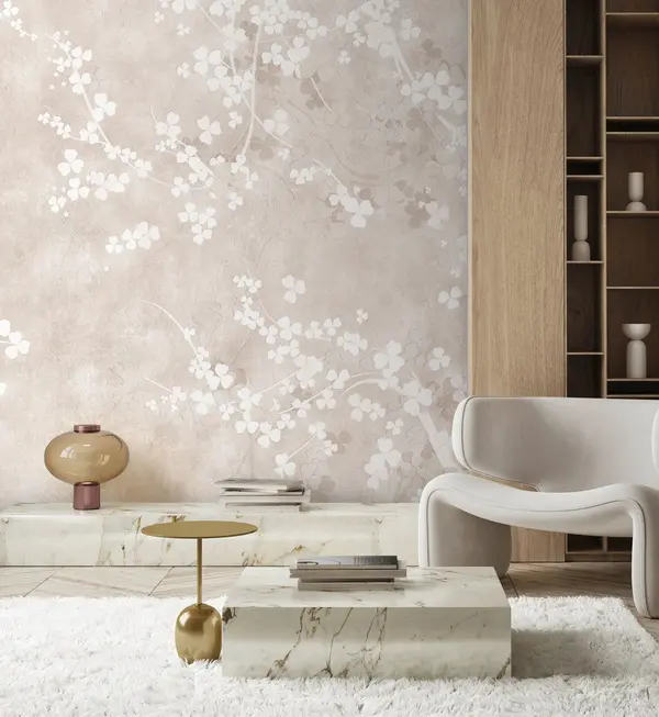 Valokuvatapetti Valkoisia hauraita oksia ja kukkia Nr u94458