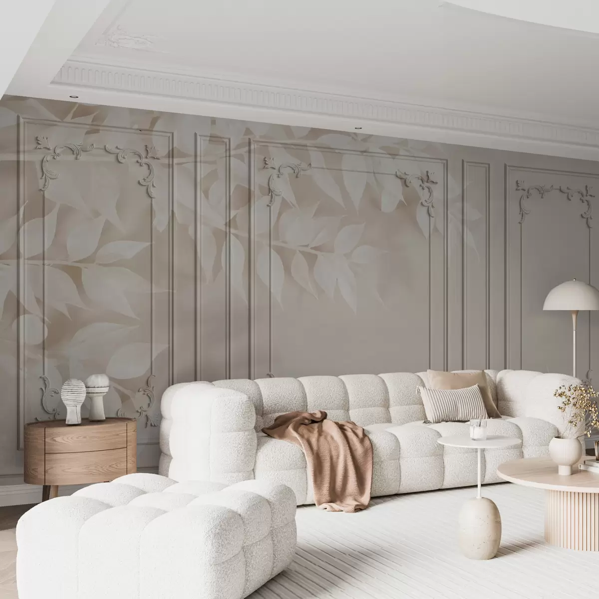 Valokuvatapetti Klassiset englantilaiset Boiserie-paneelit lehdillä u96165