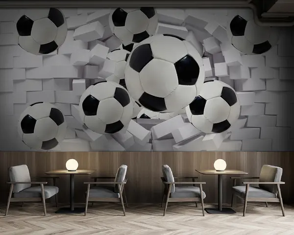 Valokuvatapetti Jalkapallot tiiliseinän taustalla Nr u94958