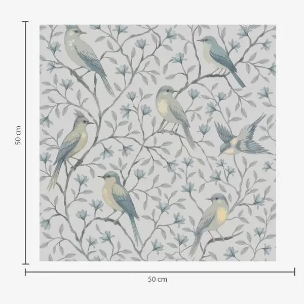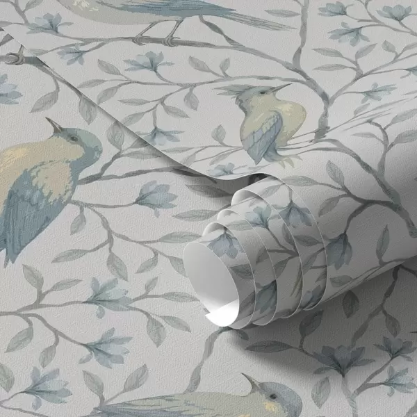 Tapetti Linnut oksilla, harmaansininen värimaailma Nr. a00782
