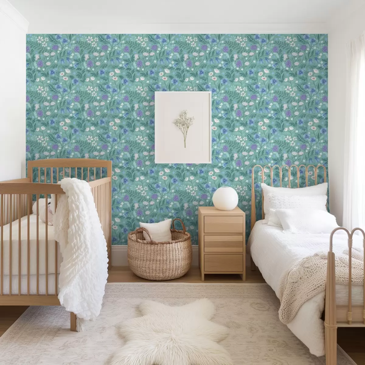 Tapetti Kukkaset ja marjat pehmeällä mintunvärisellä taustalla Nr. a00849