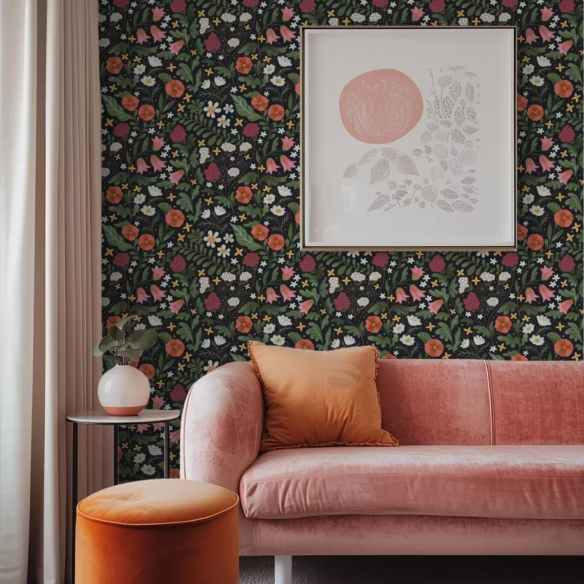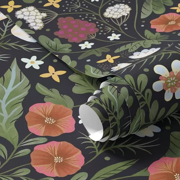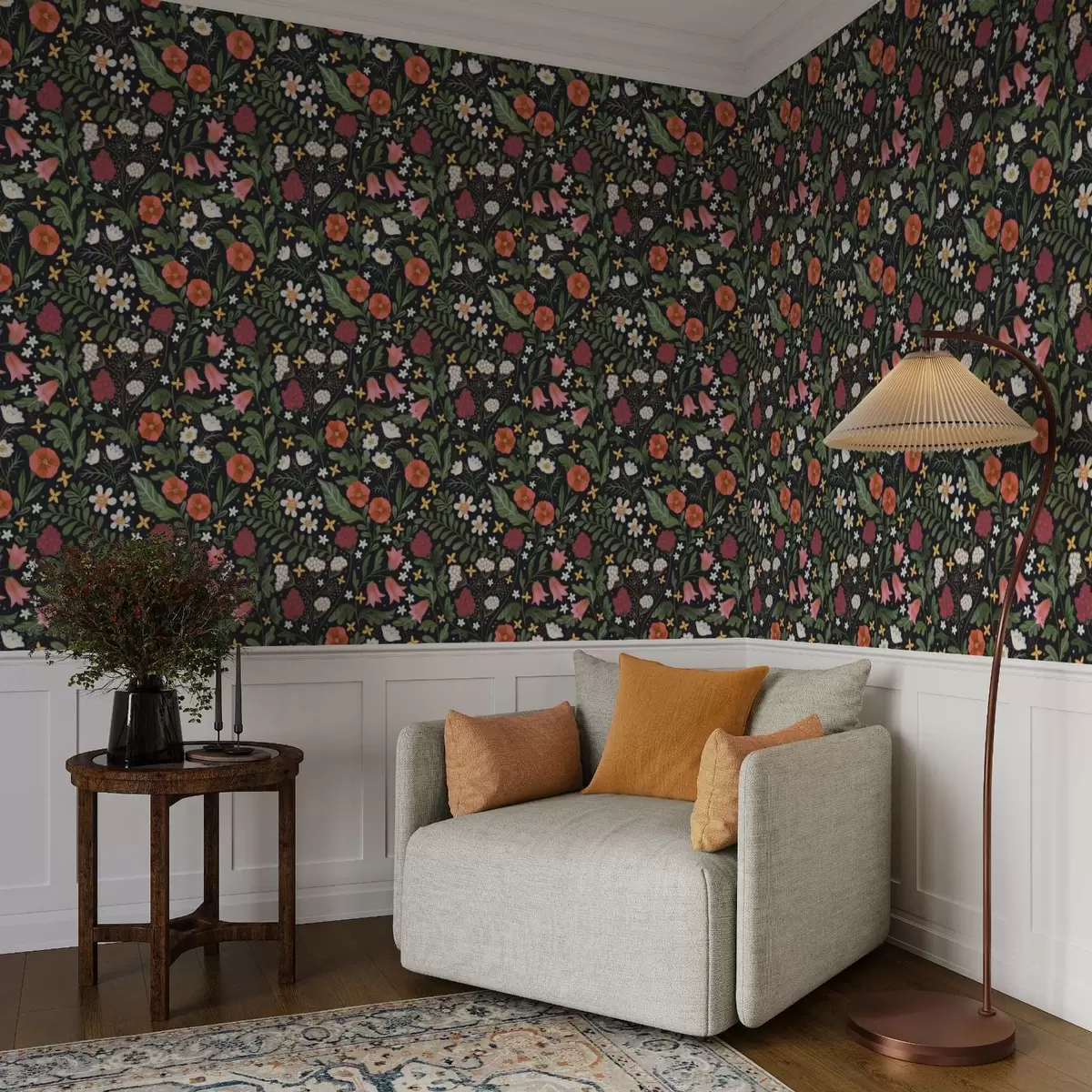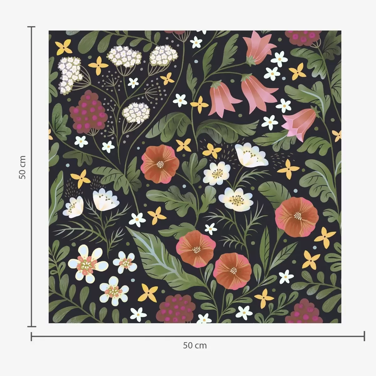 Tapetti Kukkaset ja marjat syvän mustalla taustalla Nr. a00849v3
