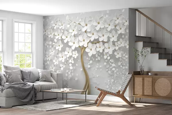 Valokuvatapetti Puu, jossa on pieniä kukkia Nr u37065d1