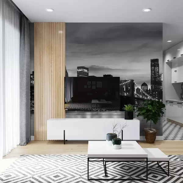 Valokuvatapetti Kaupungin horisontti iltahämärässä yksivärisenä Nr u55510