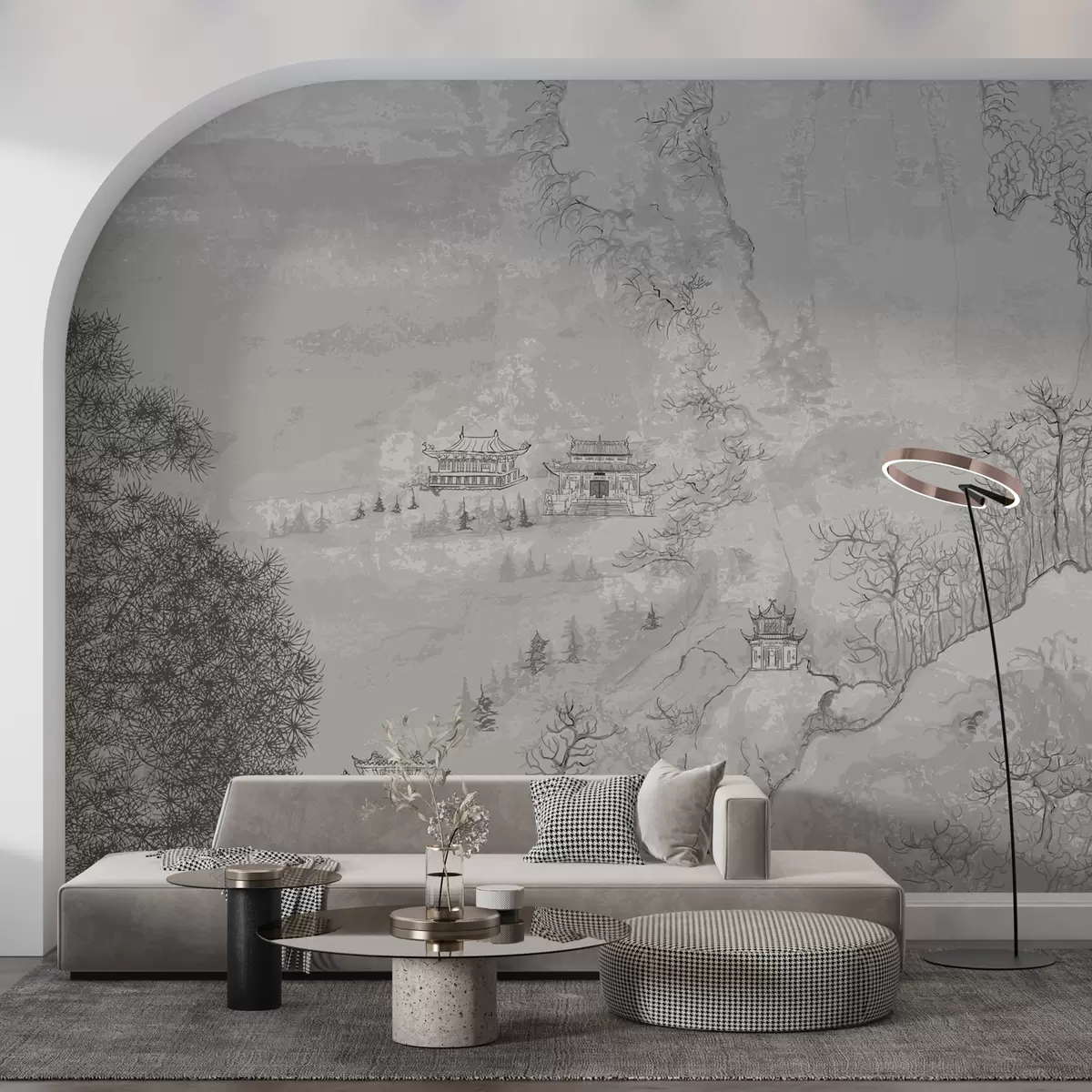 Valokuvatapetti Kuvitus kiinalaisesta maisemasta vanhan kiinalaisen maalaustaiteen tyyliin. Nr u98699