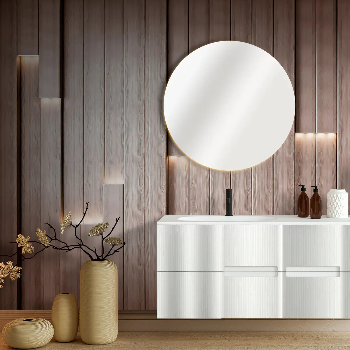 Valokuvatapetti Klassiset puupaneelit 3D-valaistuksella Nr u99321