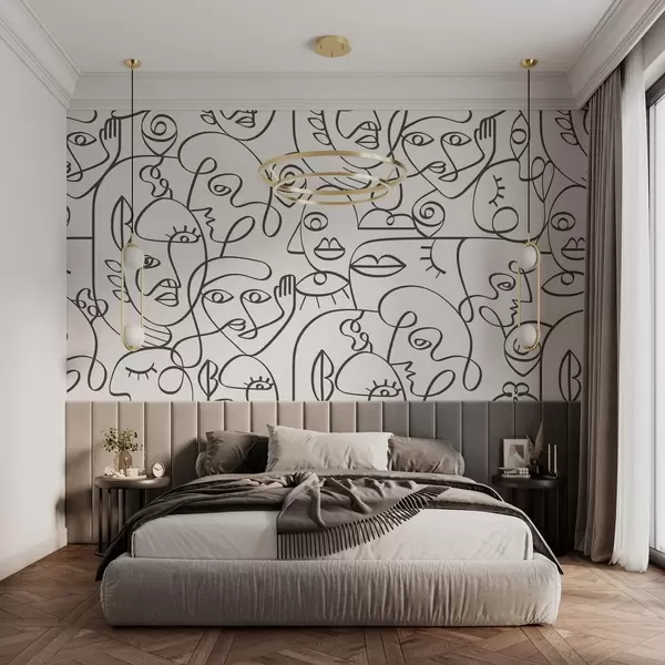 Valokuvatapetti Abstrakteja kasvoja monimutkaisessa viivataiteessa Nr w00131