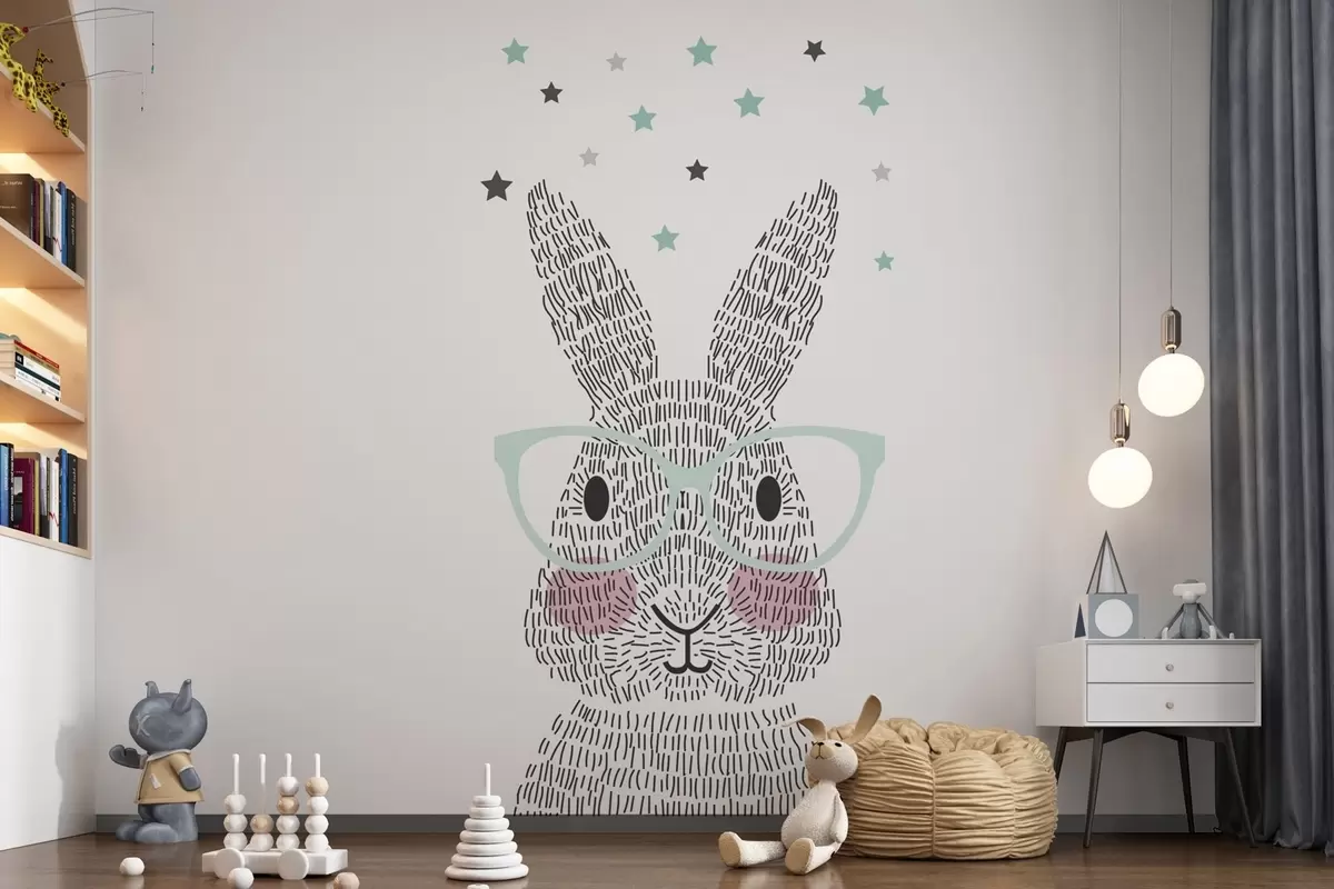 Valokuvatapetti Fiksu pupu tyylikkäillä laseilla Nr w00159