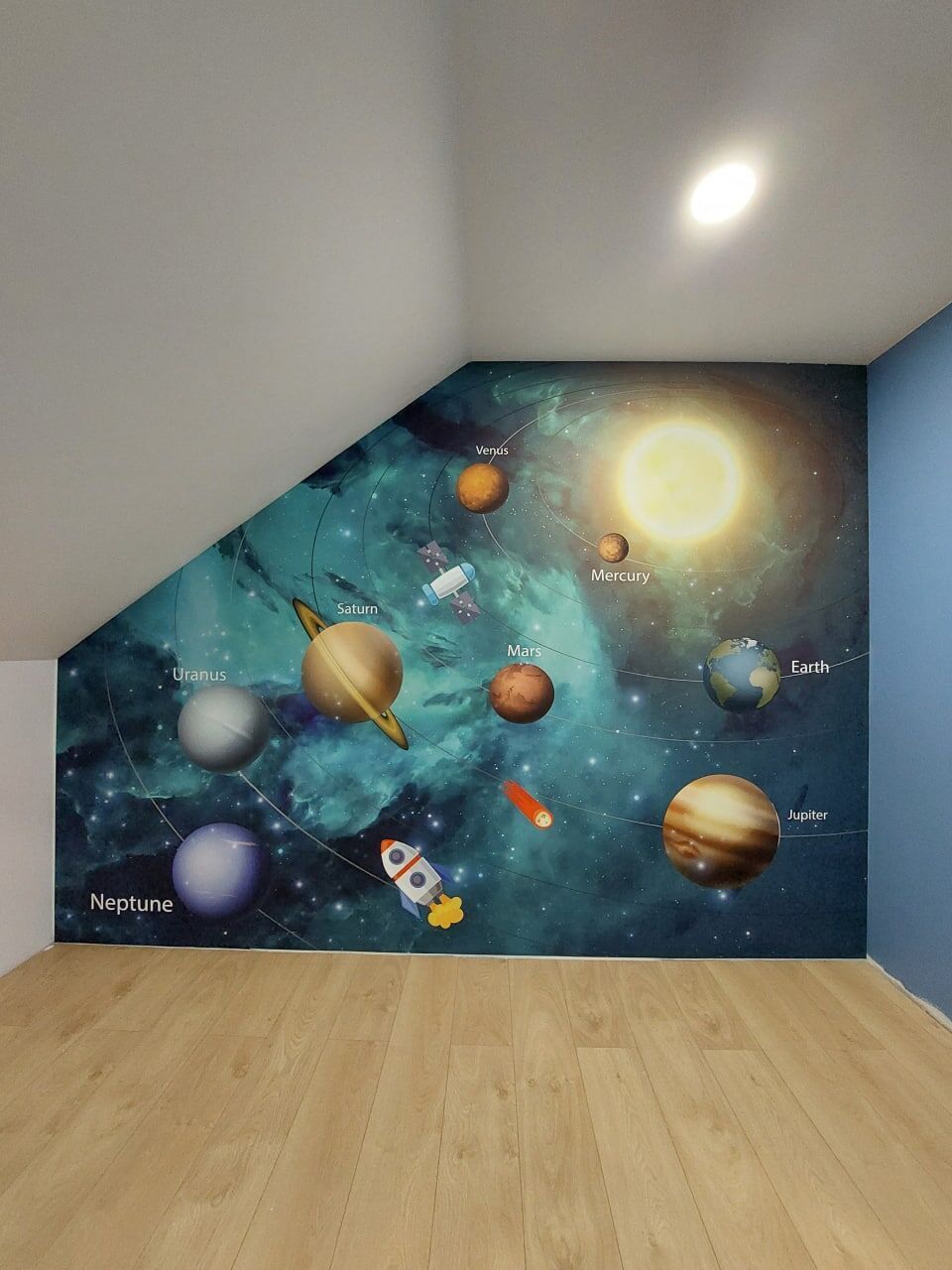 Valokuvatapetti Värikäs kuvitus eri planeetoista ja avaruusakvarellista Nr w00539