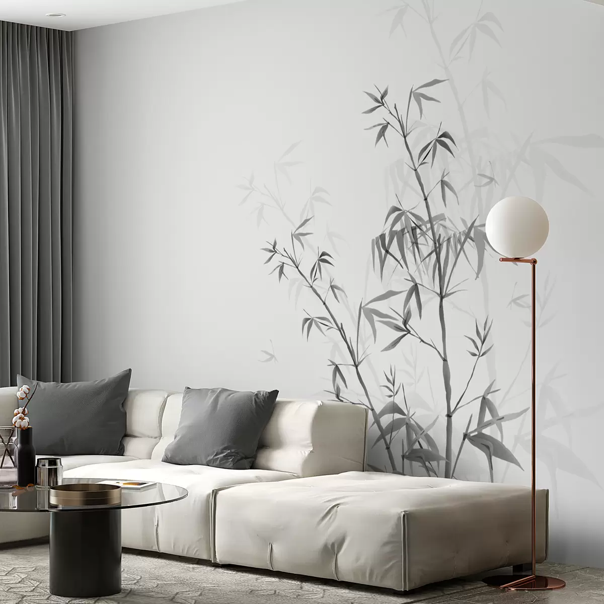 Valokuvatapetti Minimalismi tyyli Japandi kasvi bambu Chinoiserie harmaa väri Nr w00546v1