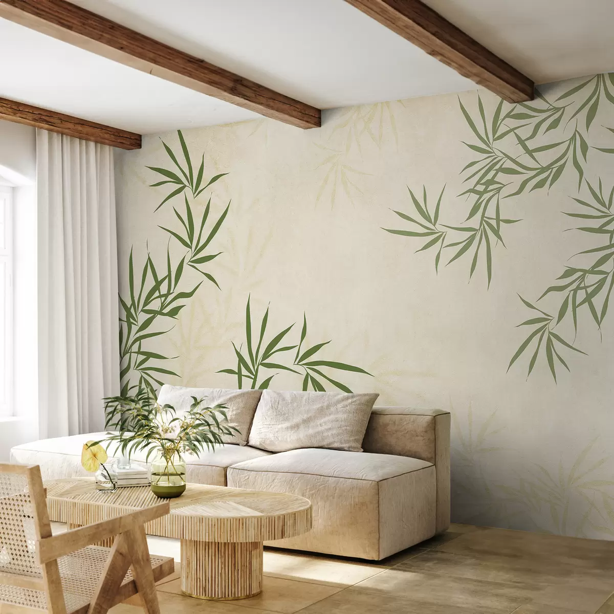 Valokuvatapetti Kasvien oksia, bambua, vintage-tyyliä, tekstuuritausta, keltainen, vihreä väri Nr w00817