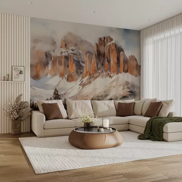 Valokuvatapetti Luminen laakso Dolomiittien vuoren juurella akvarelli Nr w00945