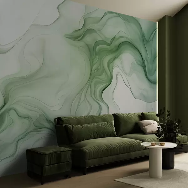 Valokuvatapetti Panoraama vihreät abstraktit aallot vaalealla taustalla Nr w01185d1