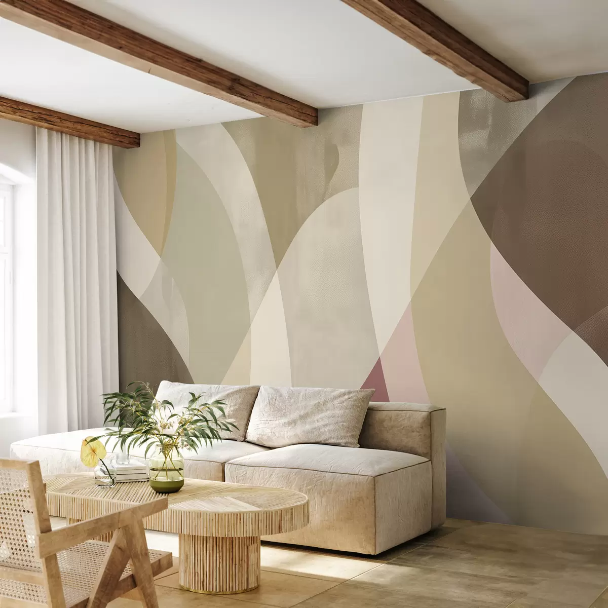 Valokuvatapetti Pehmeät kaaret vaimeissa sävyissä, sulavilla linjoilla ja beigeillä gradienteilla, minimalistinen ja moderni Nr w01334v1