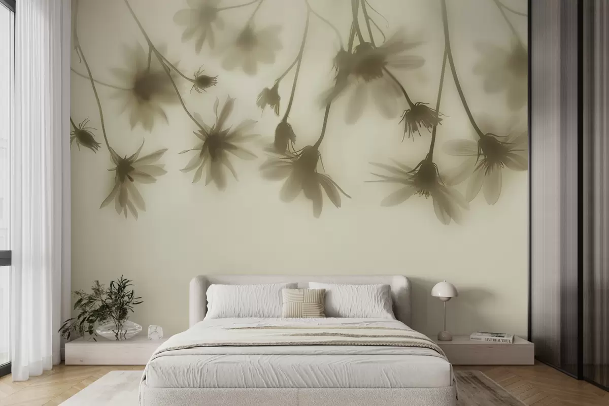 Valokuvatapetti Herkät kukat sumussa roikkuvat ylhäältä pastelliväreissä Nr w01469v1