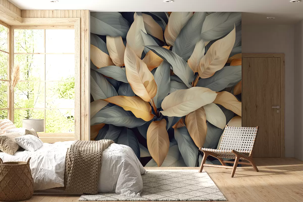 Valokuvatapetti Trooppisia kasveja vaaleanpunaisissa ja beigeissä väreissä Nr w01586v1