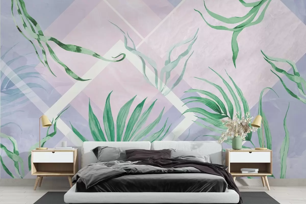 Valokuvatapetti Rehevä vehreys pehmeällä pastellisävyisellä taustalla Nr w01625