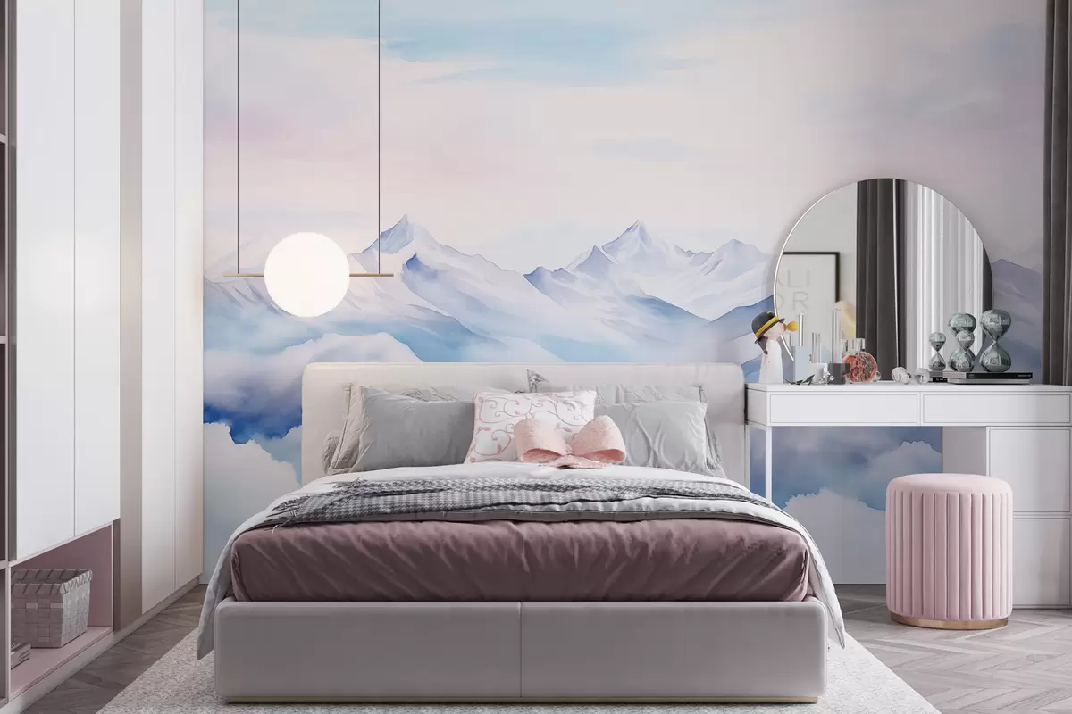 Valokuvatapetti Vuoristomaisema, akvarelli, pehmeät violetit värit Nr w01787