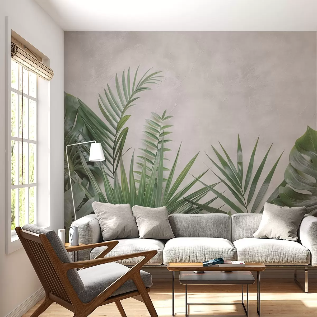 Valokuvatapetti Trooppisia tiheikköjä vaalealla betonitaustalla Nr w01898