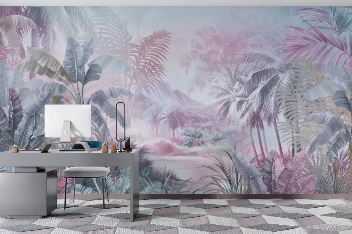 Valokuvatapetti Sademetsä pehmeillä sinisen ja vaaleanpunaisen sävyillä w01931v2