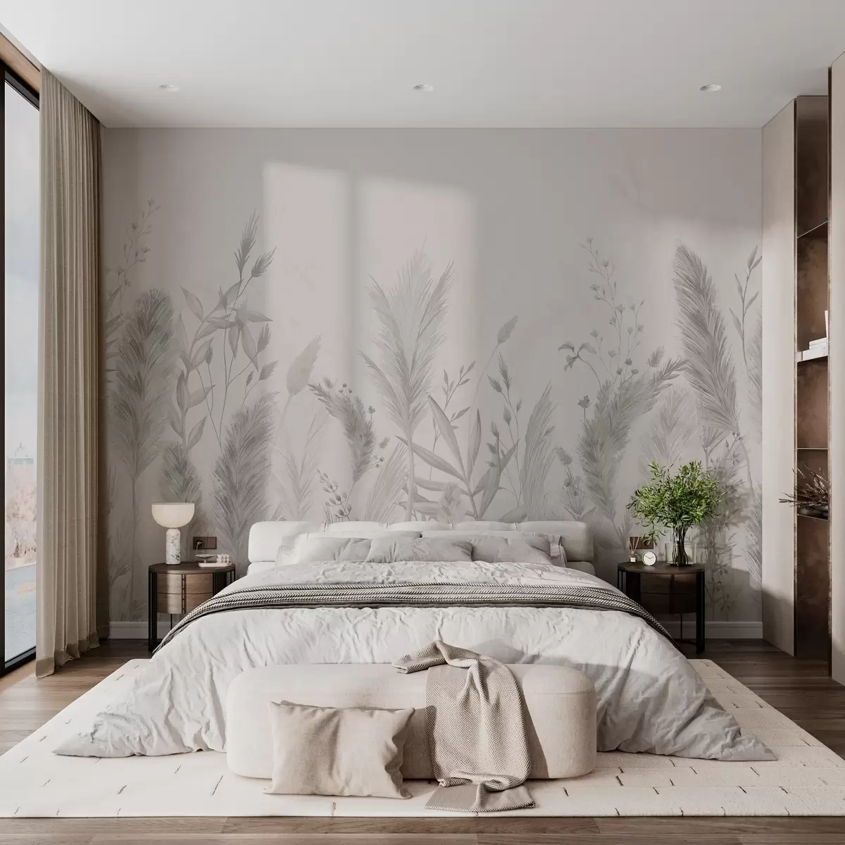 Valokuvatapetti Korkeat pellon ruohot ja kukat neutraaleissa väreissä Nr w02004