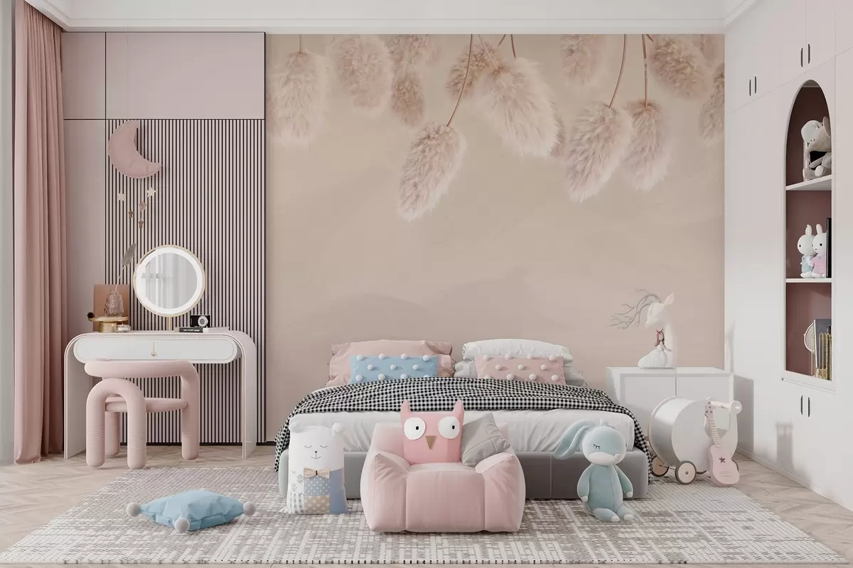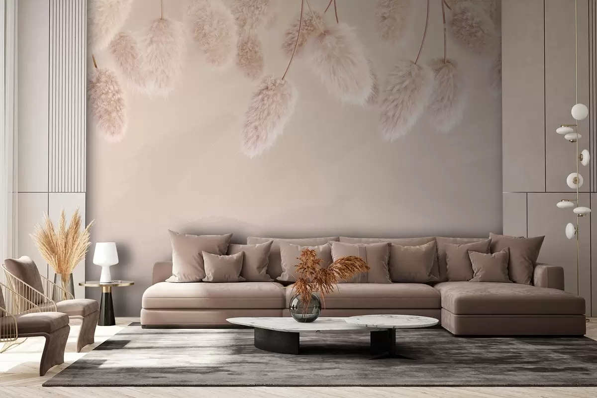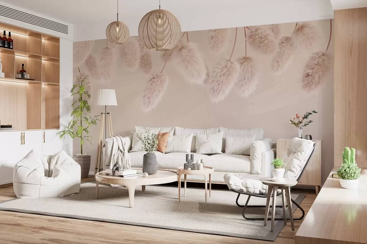 Valokuvatapetti Hellävaraisia laguruspilviä pehmeän vaaleanpunaisen taustan taustalla.. Nr w02071
