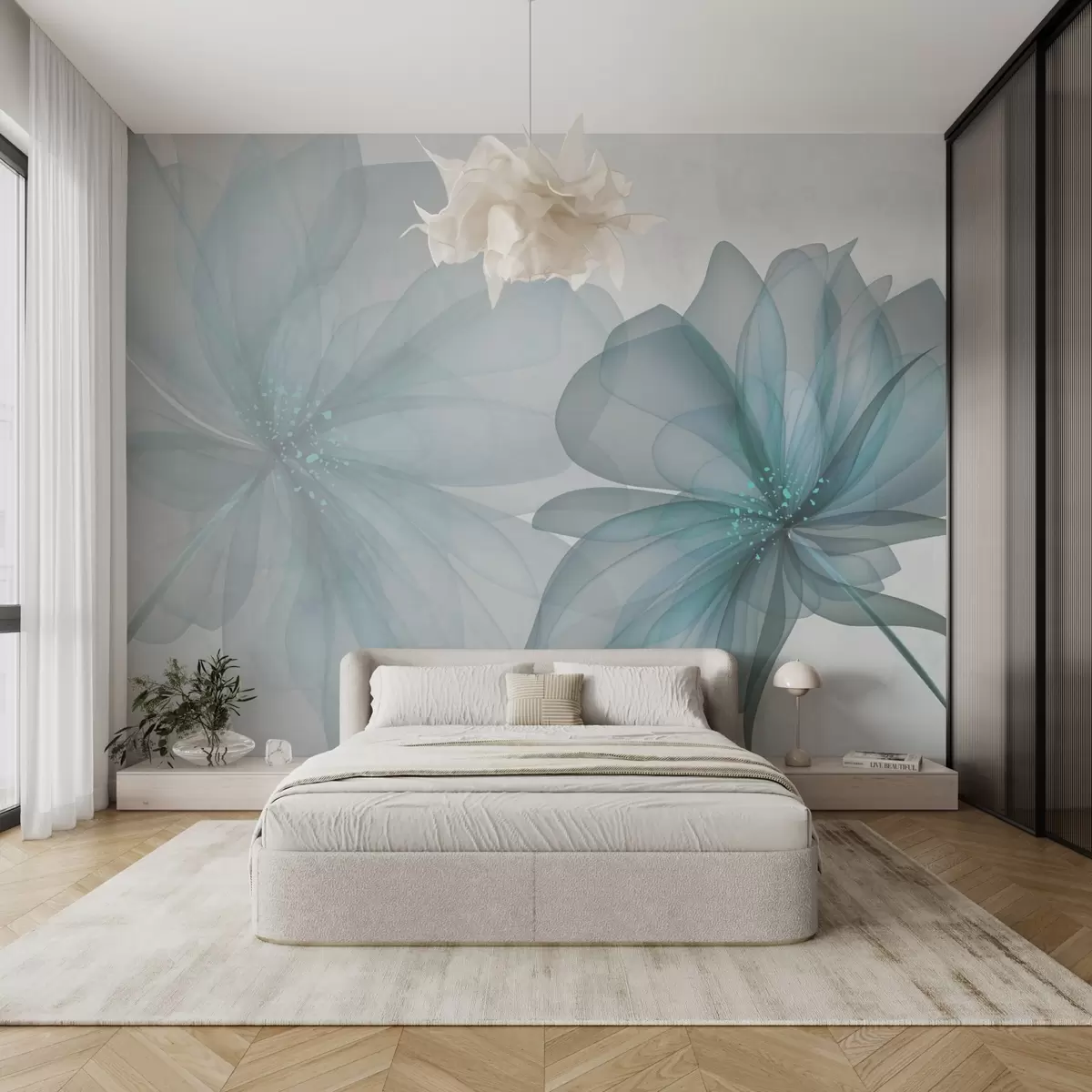 Valokuvatapetti läpikuultavat suuret siniset kukat Nr w02205v1