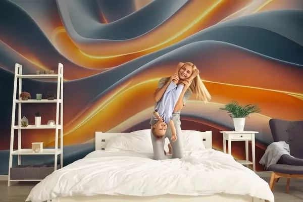 Valokuvatapetti Harmaita aaltoja, joissa on keltaisen valon kohokohtia jäljittelevää valoa Nr w02248