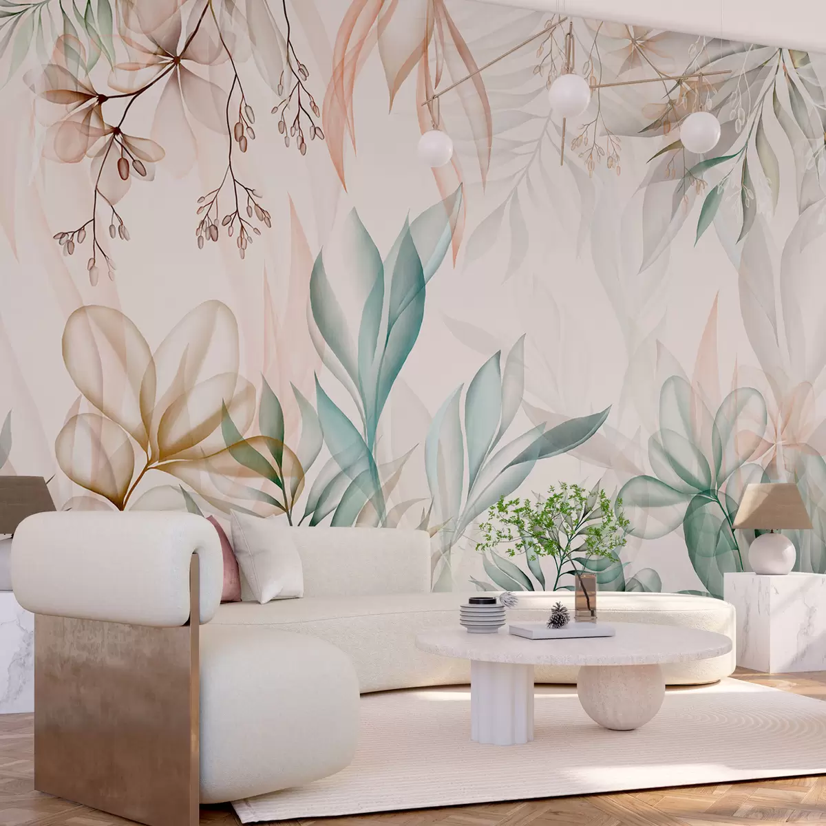 Valokuvatapetti Herkkä trooppinen lehdistö pastelliväreissä Nr w02316