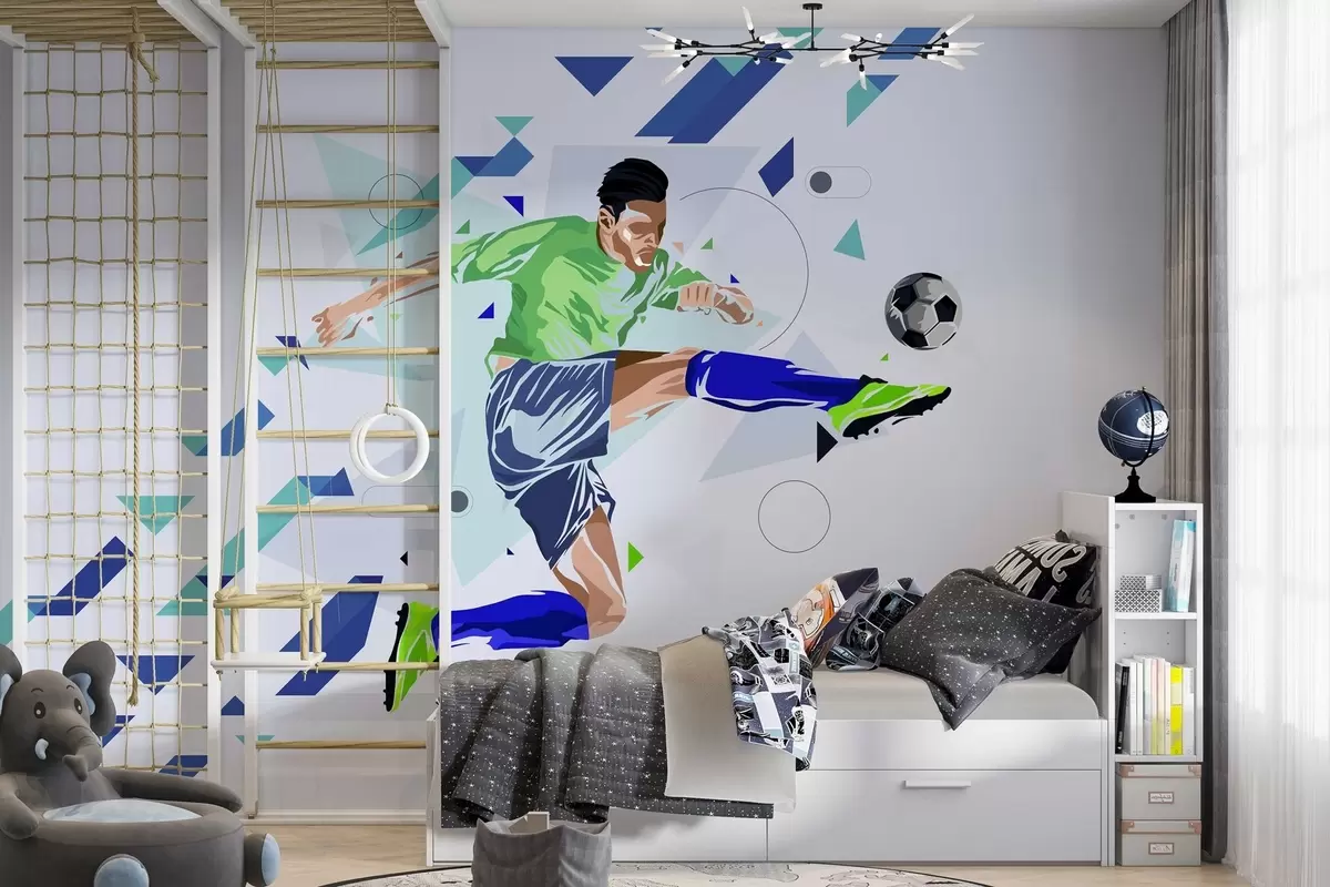 Valokuvatapetti jalkapalloilija, joka potkaisee palloa Nr w02401
