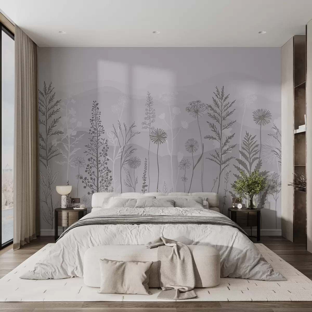 Valokuvatapetti ekotyylinen tapetti, villikukkia harmaan sävyissä Nr w02443