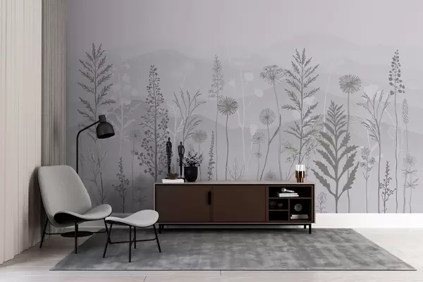 Valokuvatapetti ekotyylinen tapetti, villikukkia harmaan sävyissä Nr w02443
