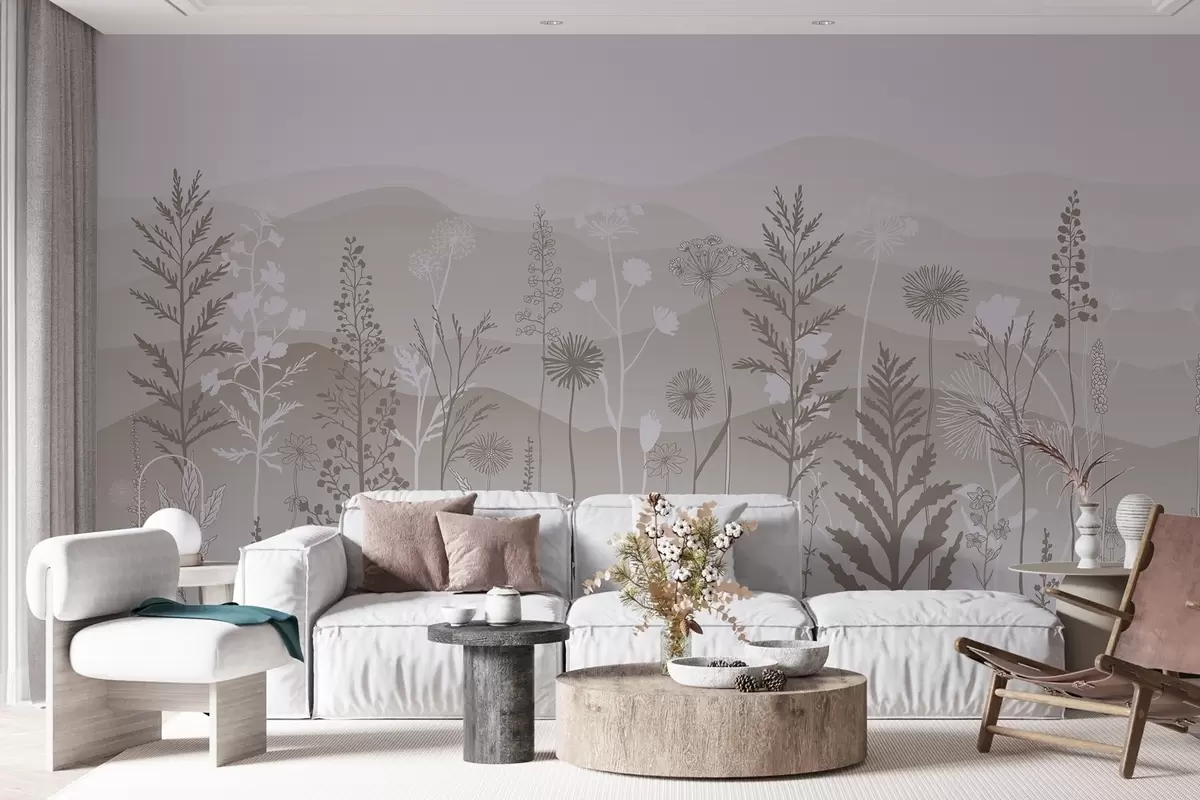 Valokuvatapetti ekotyylinen tapetti, luonnonkukkia vaaleanruskeissa sävyissä Nr w02443v1