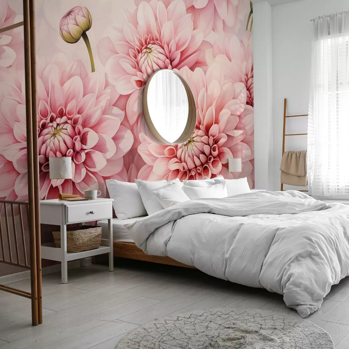 Valokuvatapetti Vaaleanpunaiset krysanteemit smitaatio vesivärit Nr w02469