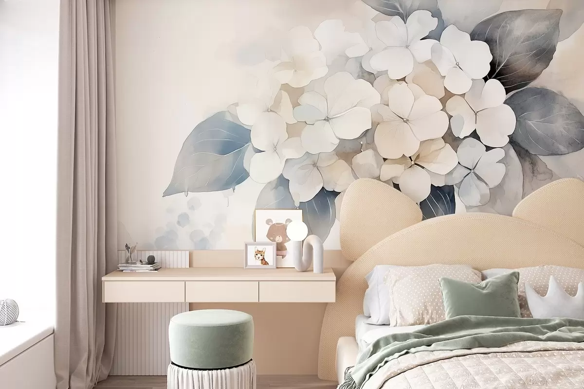 Valokuvatapetti Hortensia kukka, pehmeät värit, vesivärityyliin w02491